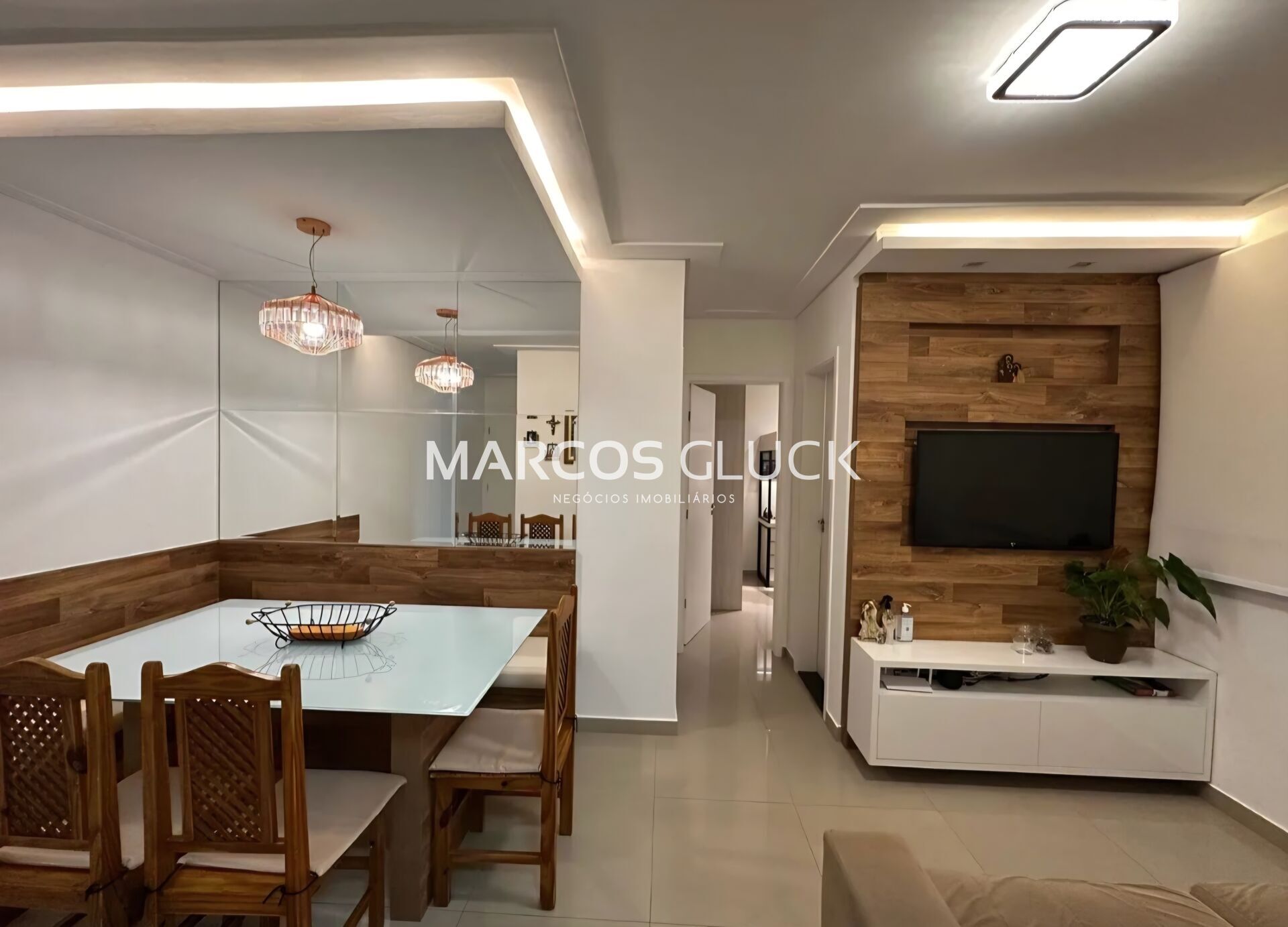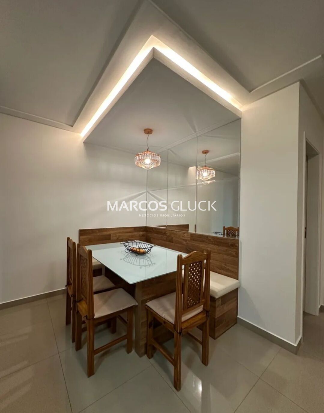 Os ambientes apresentam móveis planejados de fino acabamento, teto rebaixado em gesso e projeto de iluminação em LED, que proporcionam elegância, modernidade e excelente aproveitamento interno.